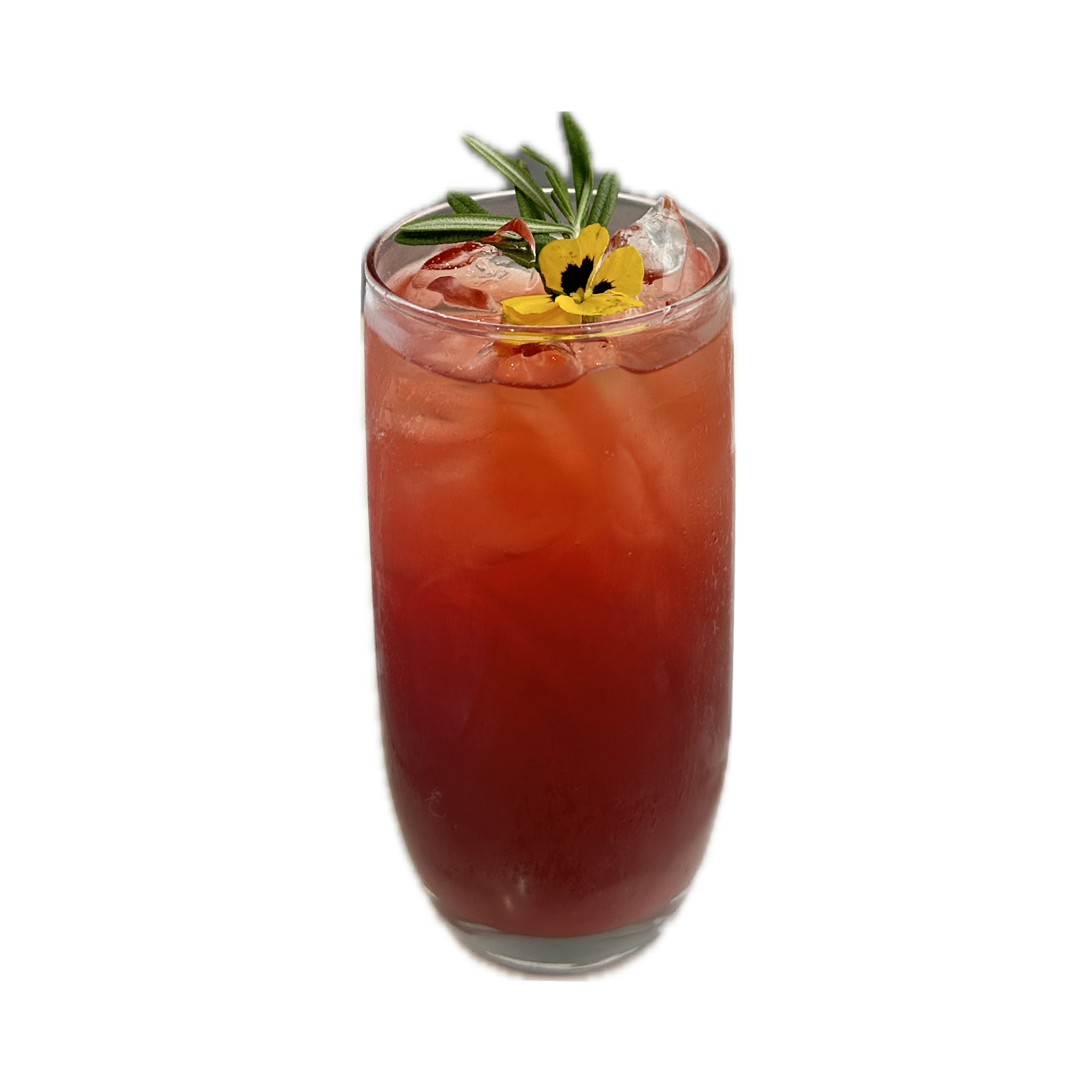 A rich mix of hibiscus earl grey tea and berries, topped with spicy ginger ale. The deep berry notes and aromatic rosemary garnish evoke the glow of festive Halloween.