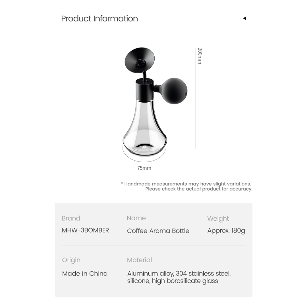 The Coffee Aroma Bottle features a rotatable aroma port and precision airflow system, designed for professional cupping and daily appreciation. Press to activate airflow and explore layered aromas with control and clarity.