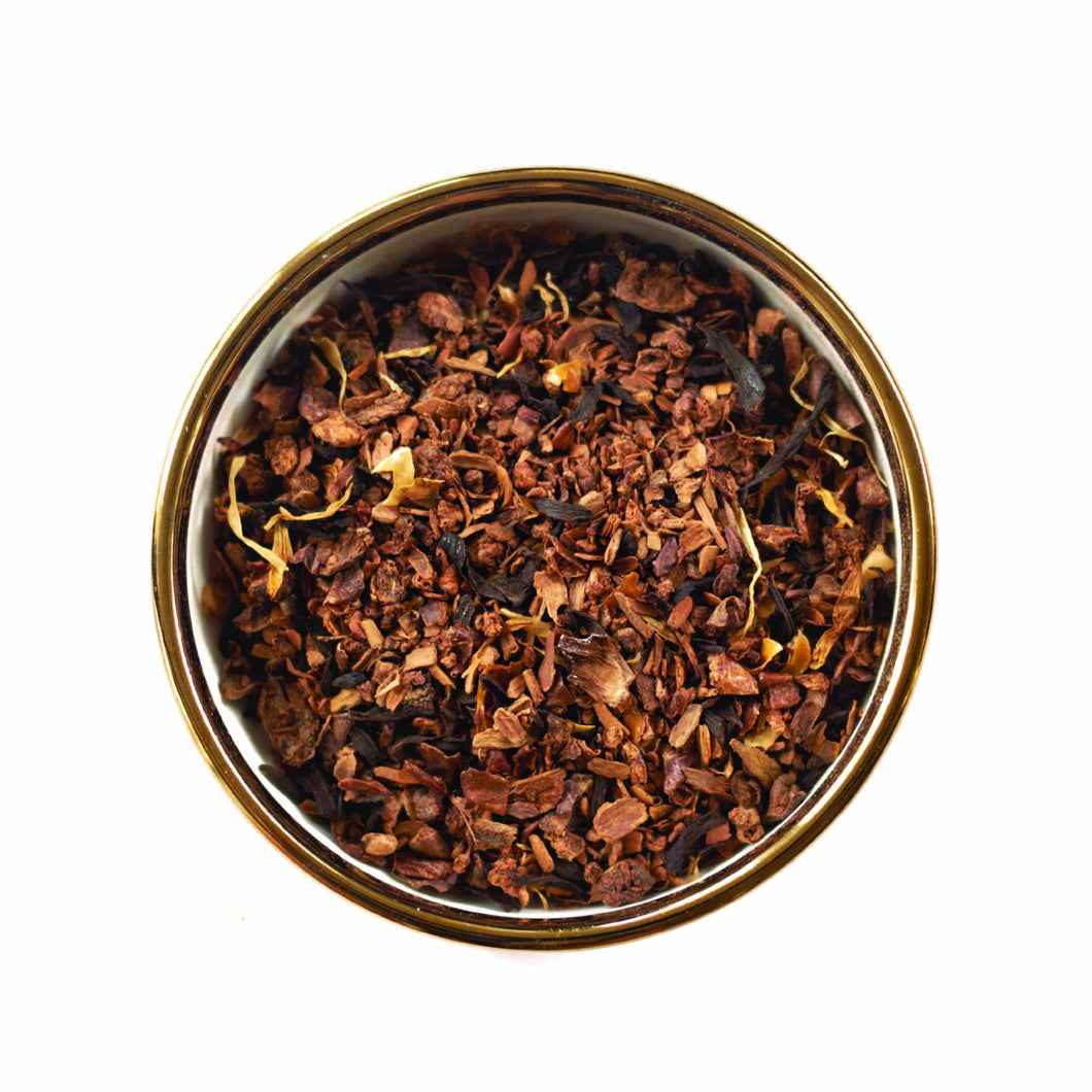 An authentic blend of apple cinnamon, hibiscus and marigold, this herbal infusion is sourish sweet and lovely, serene and romantic. Naturally caffeine-free, this is your perfect cup of afternoon tea to drink with your loved ones.